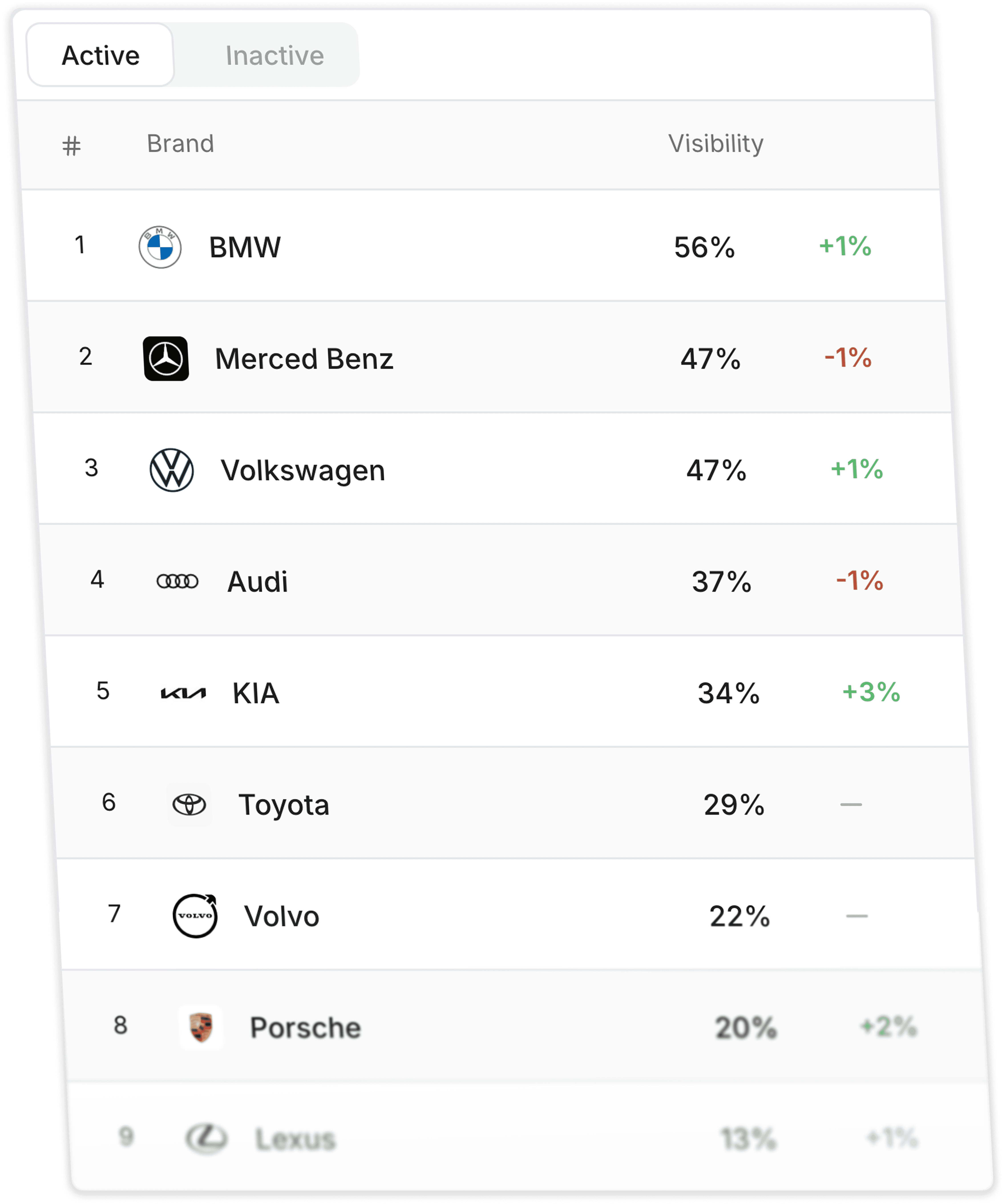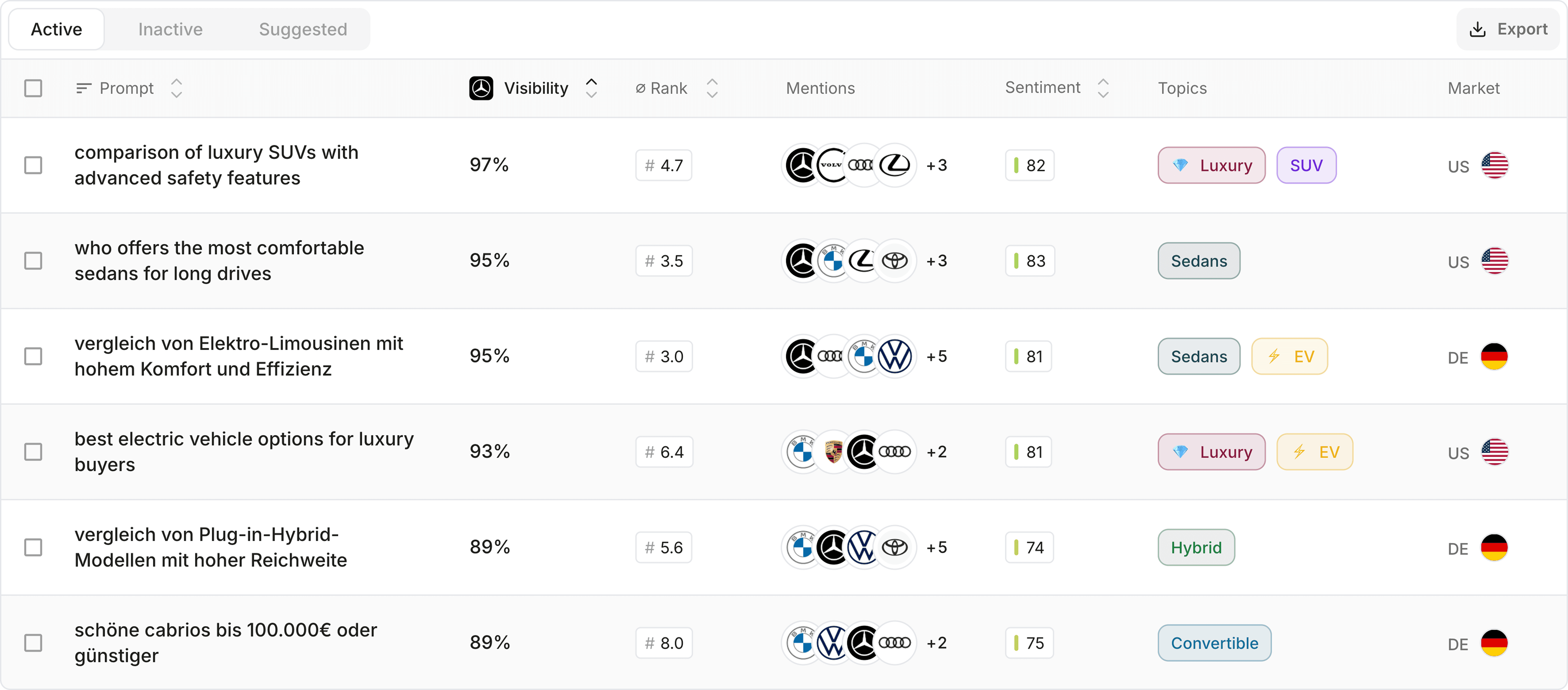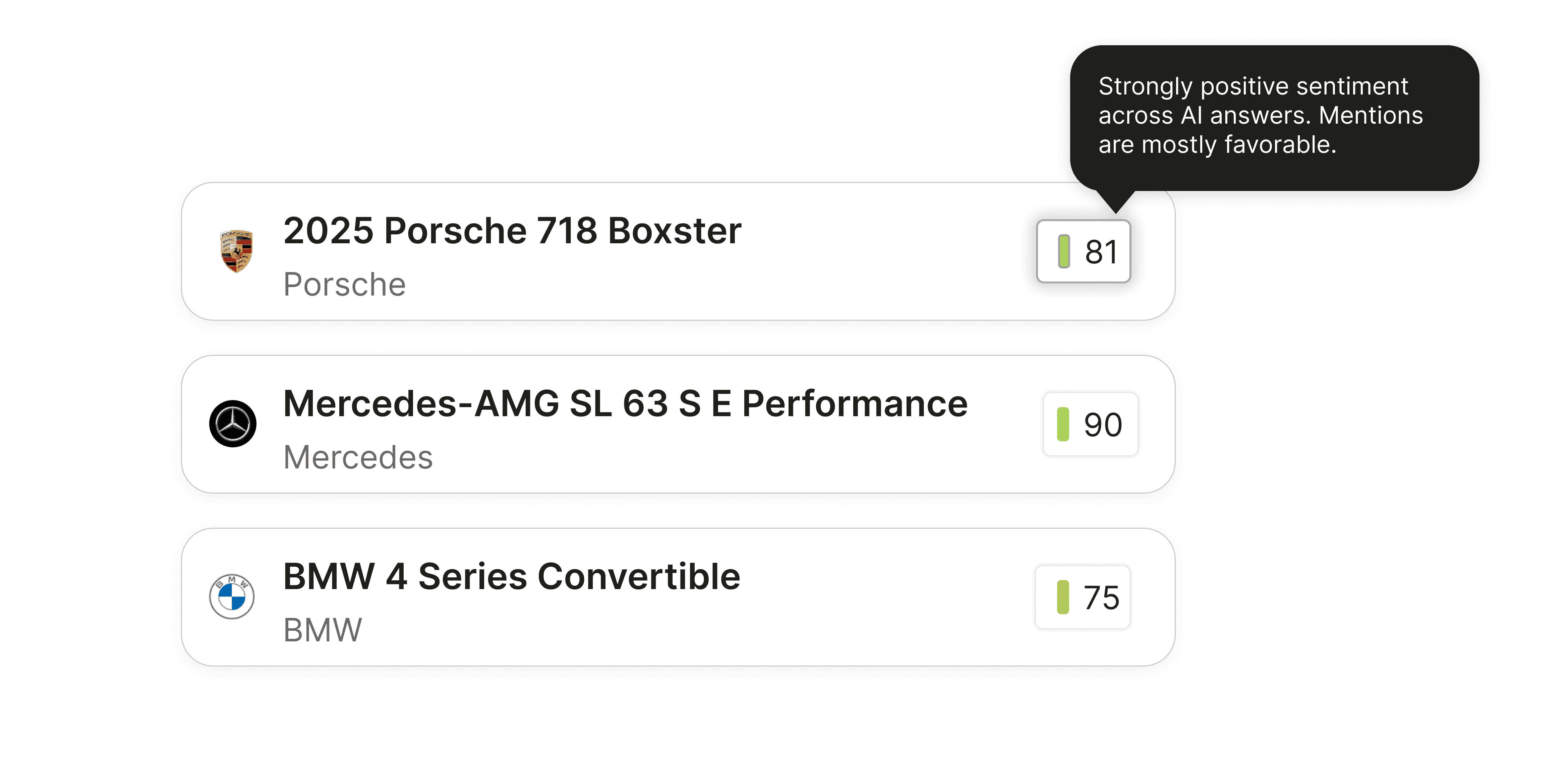 Understand how AI describes your brand, compares it to others, and frames recommendations.