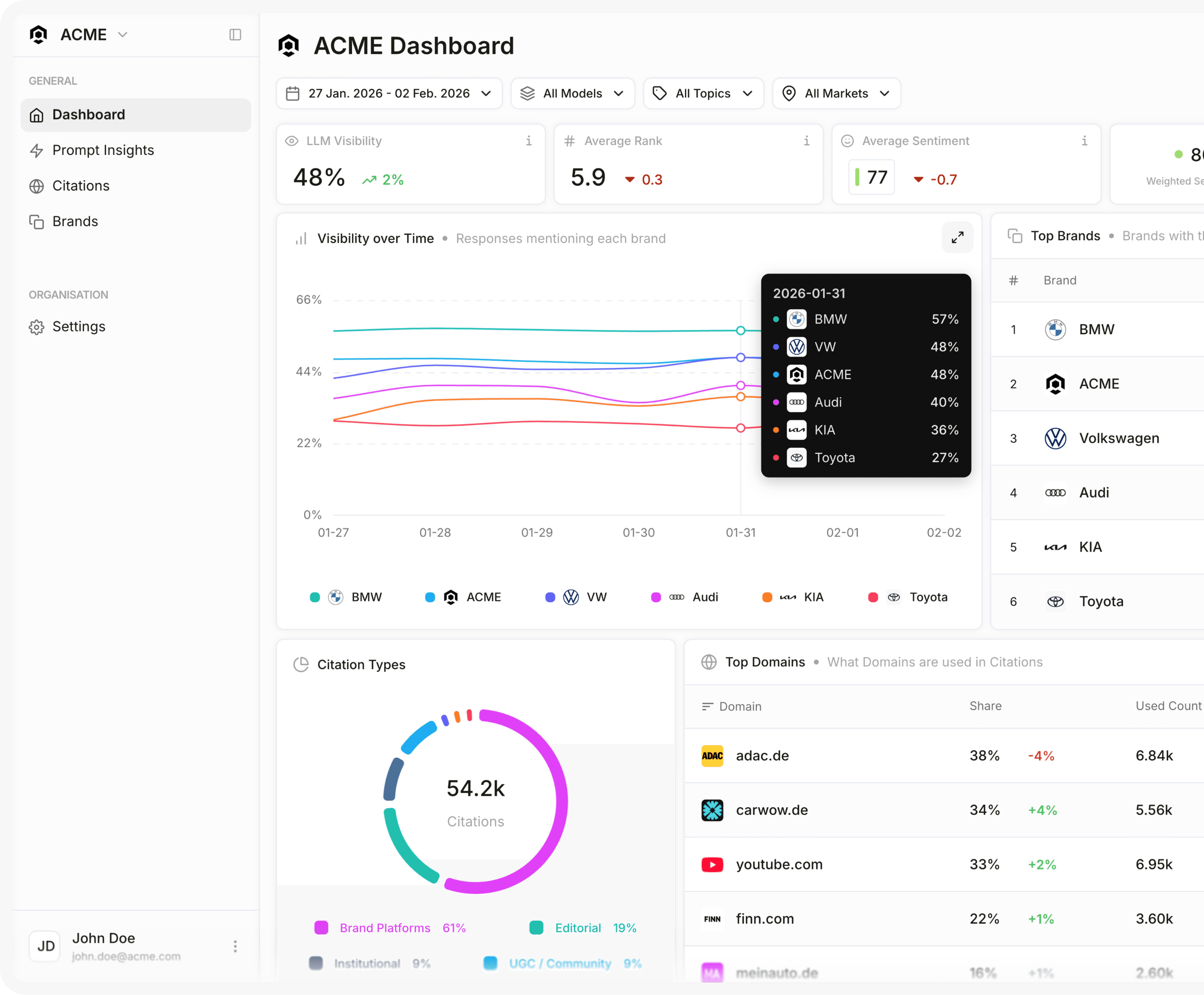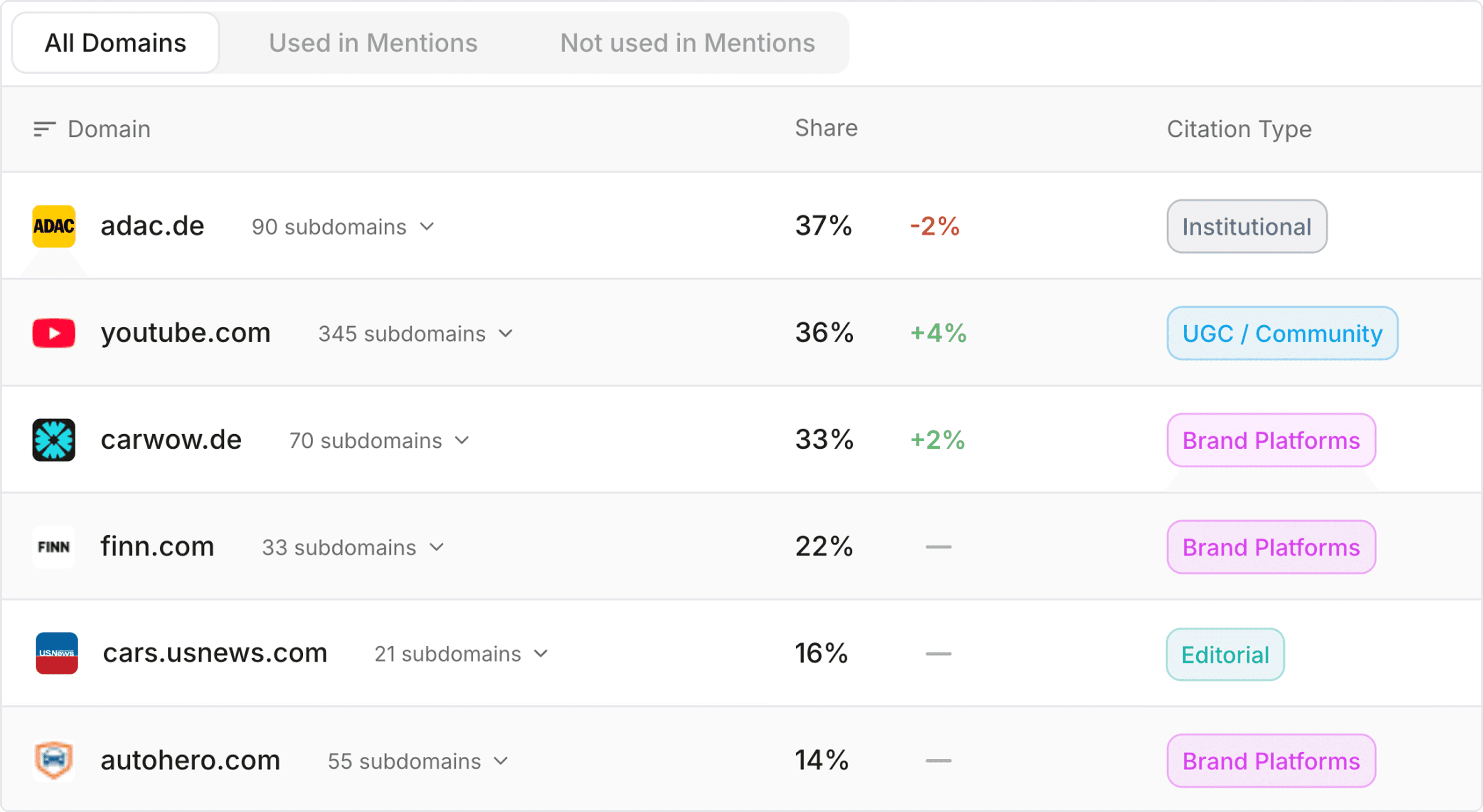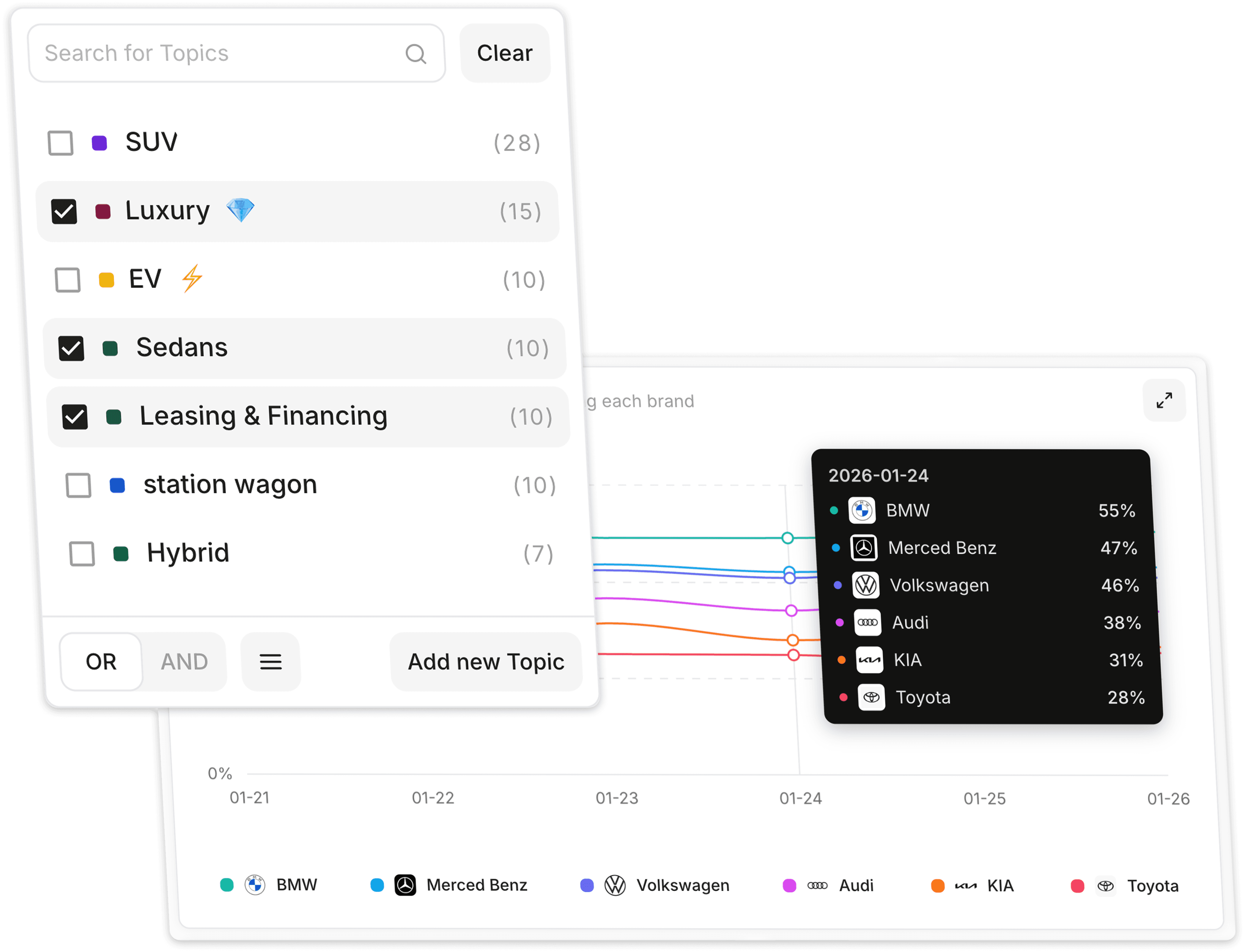 Understand how AI describes your brand, compares it to others, and frames recommendations.